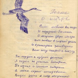 Под таким заголовком публиковалось несколько статей, связанных с историей заповедника. Мы решили не нарушать эту традицию, тем более что в наших руках оказалась действительно пожелтевшая от времени тетрадка в 48 листов. Первым в руки её взял Василий Сергеевич Храмцов. Именно он предложил делать в ней записи всем, кто бывал на заповедной территории по долгу служебных обязанностей, на учебной практике, с целью исследования заповедных мест. Так родилась традиция, которая предполагала наличие подобных тетрадей в каждой лесной избушке. Записи делали и в прозе, и в стихах. Назвал Василий Сергеевич своё изобретение «Тетрадь для стихов, рассказов, сказок, басен и песен», и первую из них положил в 1974 году на кордоне в Корпади. Вначале стихи свои на страницах тетради в клеточку оставлял только он. Стихи простые, незатейливые, не претендующие на всемирное признание новоявленного поэта, но зато добрые, тёплые, греющие душу усталого путника. Давайте приоткроем тайну старой пожелтевшей тетрадки в 48 листов. О чём и о ком только не писали остававшиеся один на один с тишиной леса и светом мерцающих звёзд в лесной избушке посетители заповедной территории.